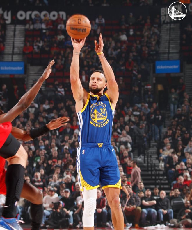 北京时间12月15日,勇士以131-136被开拓者逆转。这场比赛37岁的老将控卫斯蒂芬-库里又打出了生涯代表作,他又一次单场命中12个三分球斩获40+的数据,他无愧是小球王者,此役库里又一战创造多项纪录,只可惜他的致命失误葬送比。